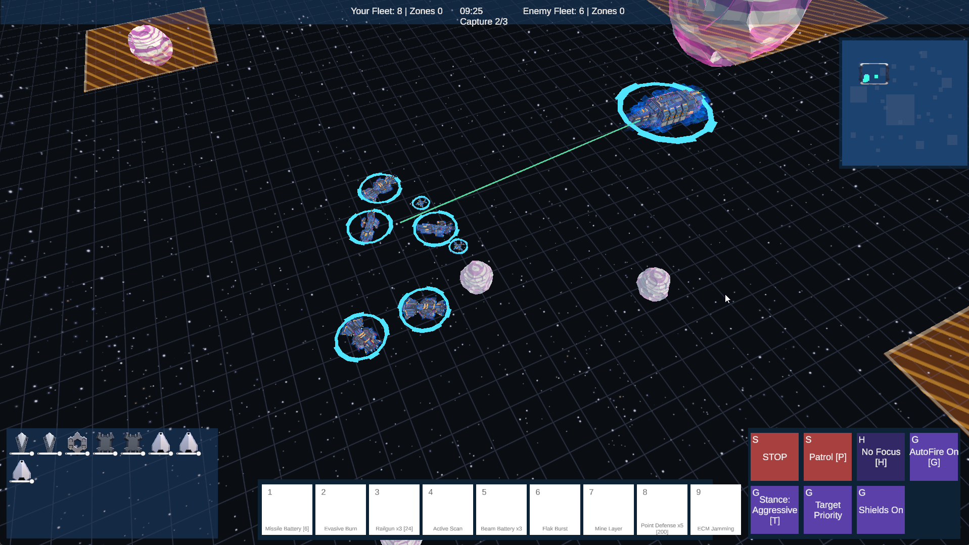 - Left Click + Drag: Box select multiple ships