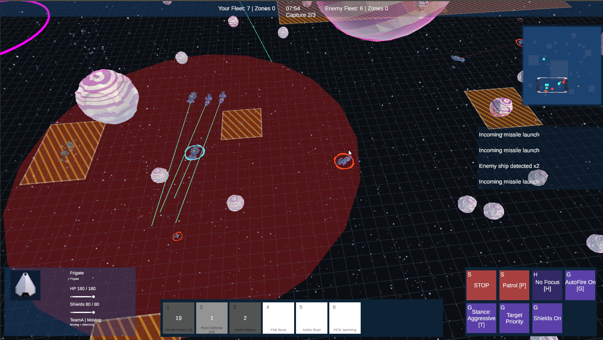 Issue movement and attack orders across the battlefield, activate ship abilities, and adapt as the fight changes. Missiles, scans, jamming, evasive maneuvers, mines, point defense, and heavy weapons all play a role in shaping each engagement.